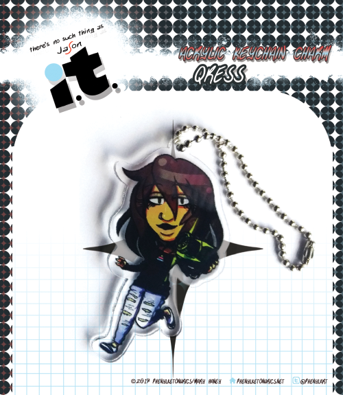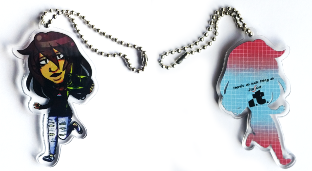 Double-sided die-cut acrylic keychain set of There's No Such Thing as Jason character Qress.